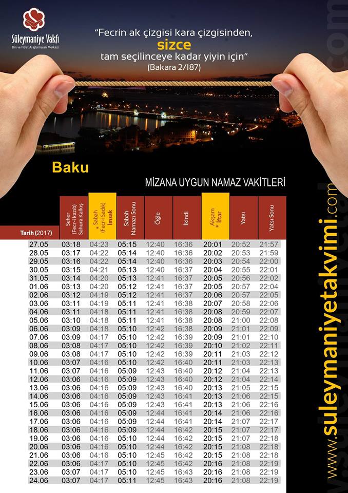2017 Ramazan Təqvimi Baki Vaxtilə Musəlmanlar
