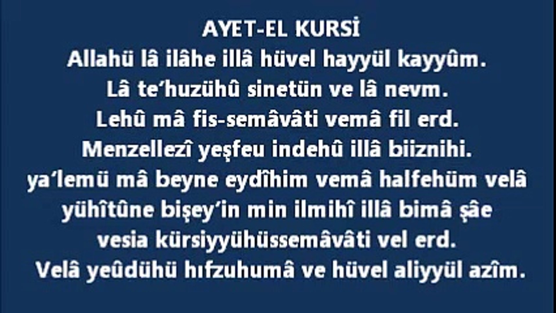 Ayetel Kursi Okunusu Turkce Bismillahirrahmanirrahim Allahu La